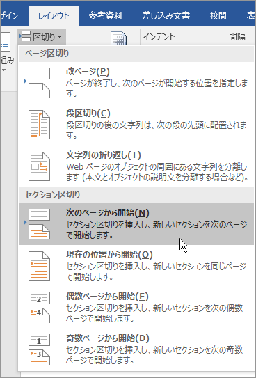 Word文書でセクションを作成するには、セクション ブレークを挿入する必要があります。セクション ブレークは、文書を複数の部分に分割し、各部分に異なるレイアウトやフォーマットを適用できるようにします。セクション ブレークを挿入するには、レイアウト タブの セクション ブレーク ボタンをクリックし、セクション ブレーク メニューから 次のページ を選択します。