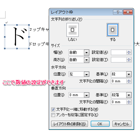 ドロップキャップの設定方法