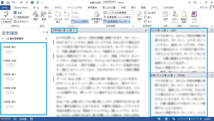 この機能は、ビジネス文書の校正や、契約書の変更点の確認、学生のレポートのチェックなど、さまざまなシーンで役立ちます。文書の変更履歴を追跡することで、作業の効率化と協力作業の向上を実現できます。