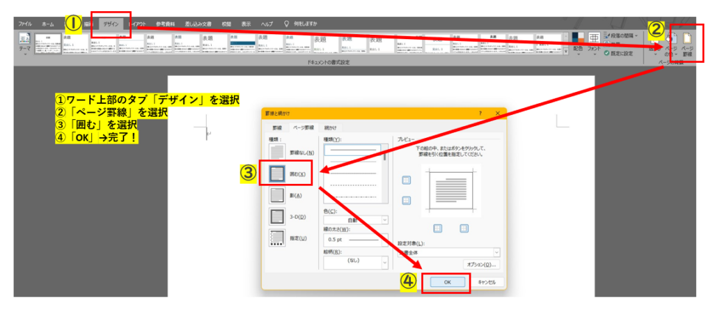 Word文書で罫線と枠線のデザイン方法はどうすればいいですか?