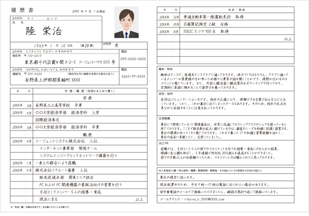 氏名は、漢字とひらがなで記載し、生年月日は西暦で記載します。住所は、郵便番号を含めて記載し、学歴は、卒業した学校名と卒業年月を記載します。職歴は、職務経験を年月順に記載し、資格・スキルは、取得した資格やスキルを具体的に記載します。これらの項目を正しく記載することで、応募者の経歴を明確に伝えることができます。