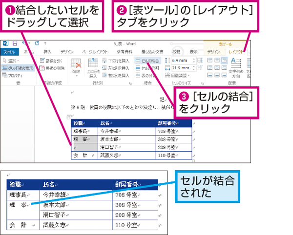 Wordで表のセルを結合する方法:レイアウトタブで複数セルを1つにまとめる