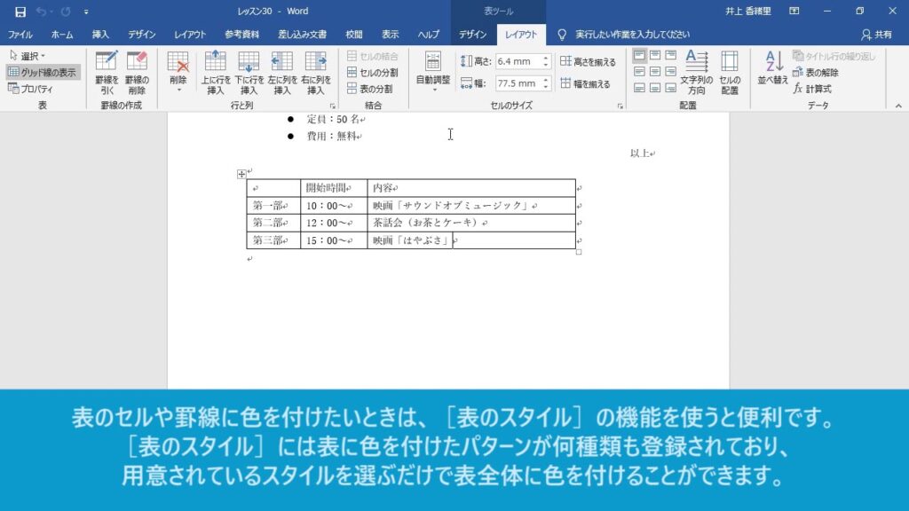 Word 表の行に色を付ける方法は?