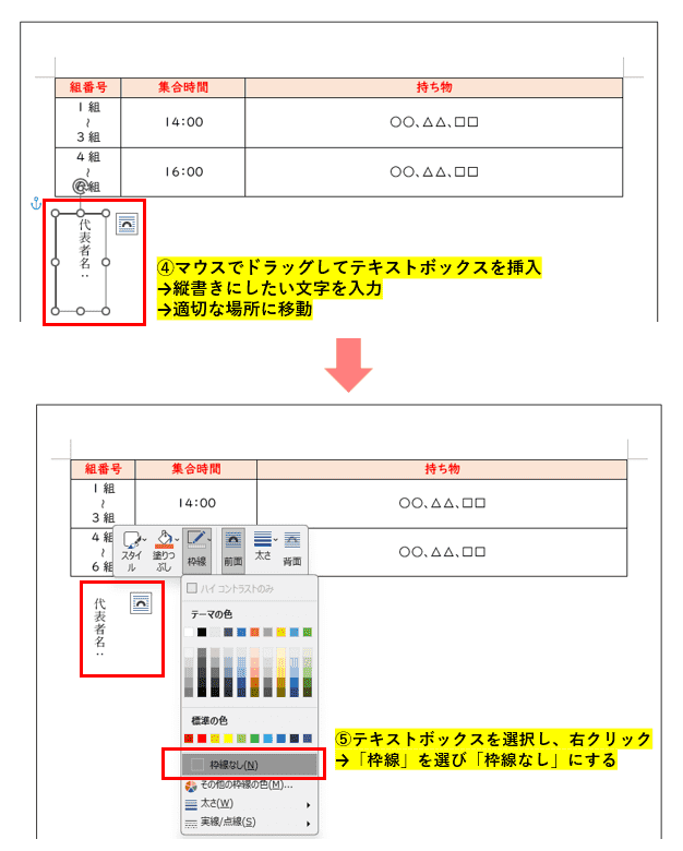 Word で縦方向に文字を揃える方法:セル・テキストボックス・縦書き対応