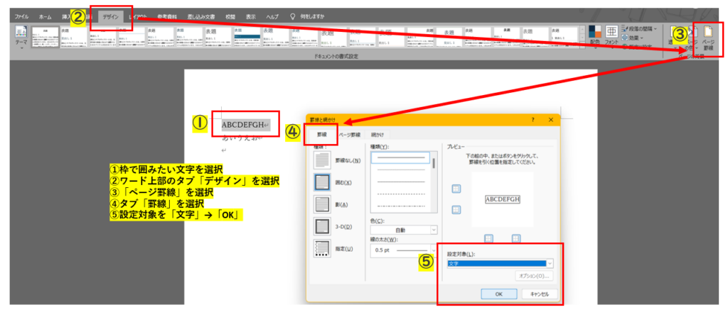 枠線を使用して文字を囲む方法