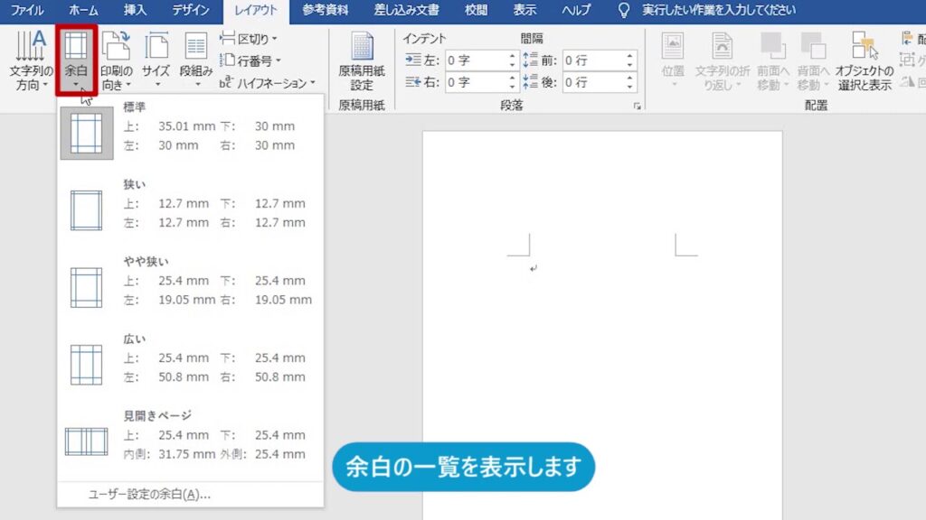 また、余白の設定は、文書の印刷にも影響します。余白が狭すぎると、印刷時に文書の内容が切れてしまう可能性があります。したがって、文書を印刷する場合には、余白の設定を十分に確認する必要があります。