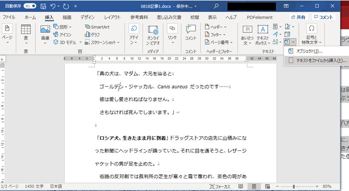 ファイルの結合方法:Wordの「オブジェクト」機能